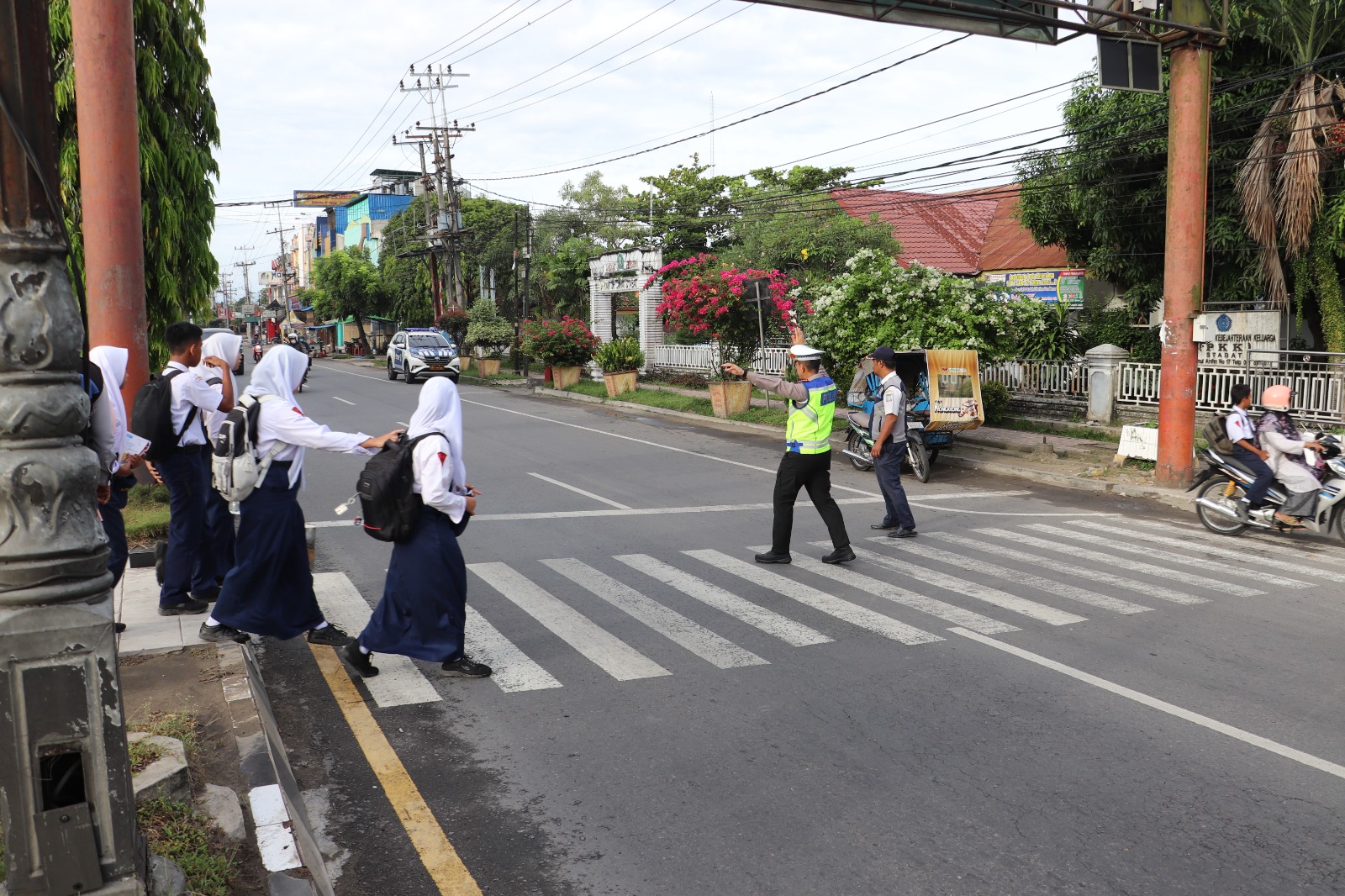 Antisipasi Kemacetan, Jajaran Polres Langkat Gelar Pengaturan Lalu lintas di Pagi Hari
