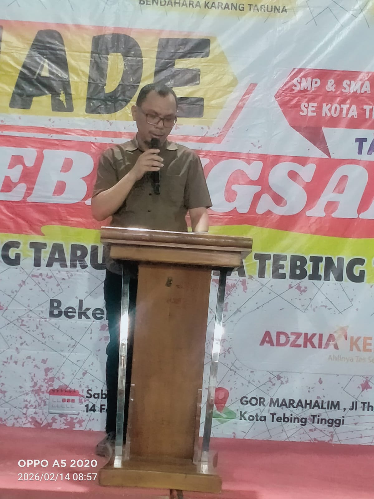 Karang Taruna Kota Tebingtinggi menggelar acara literasi Olimpiade Kebangsaan terhadap pelajar tingkat Siswa/i SMP dan Siswa/i SMA sederajat se-kota Tebingtinggi,pada hari Sabtu (14/2/2026) bertempat di Aula Gedung Olah Raga Jalan Thamrin Kota Tebingtinggi.