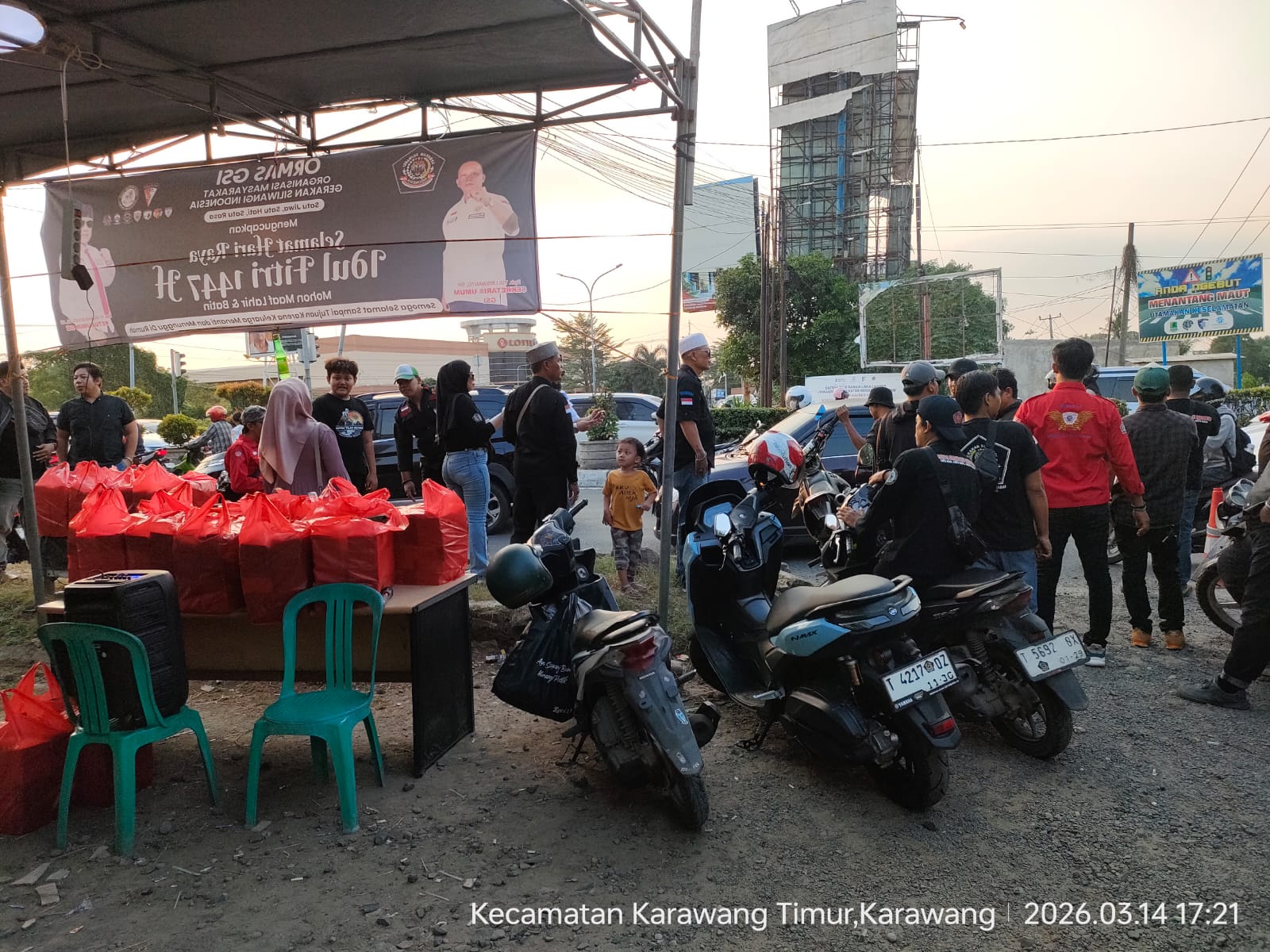Kegiatan sosial tersebut dilaksanakan di kawasan Lampu Merah Jalan Baru, Karawang, pada Sabtu sore (14/03/2026). Puluhan anggota GSI turun langsung ke jalan untuk membagikan paket takjil kepada para pengendara roda dua, roda empat, serta masyarakat yang melintas menjelang waktu berbuka puasa.