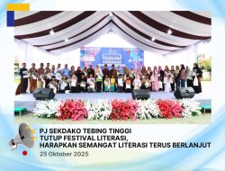 Penjabat Sekretaris Daerah Kota Tebingtinggi, Muhammad Syah Irwan, secara resmi menutup pelaksanaan Festival Literasi tahun 2025,pada hari Sabtu (25/10/2025)di Tanah Lapang Merdeka, Jalan Dr. Sutomo Kota Tebingtinggi.
