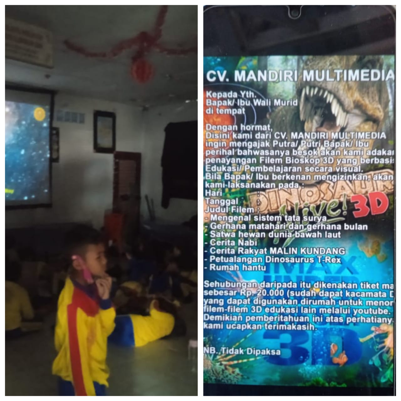 Informasi yang dihimpun, pihak sekolah menggandeng CV Mandiri Multi Media untuk membagikan kacamata karton-plastik dan menggelar pemutaran film “3 Dimensi” yang diklaim bernuansa pendidikan. Namun di balik itu, setiap siswa wajib membayar Rp 20.000.