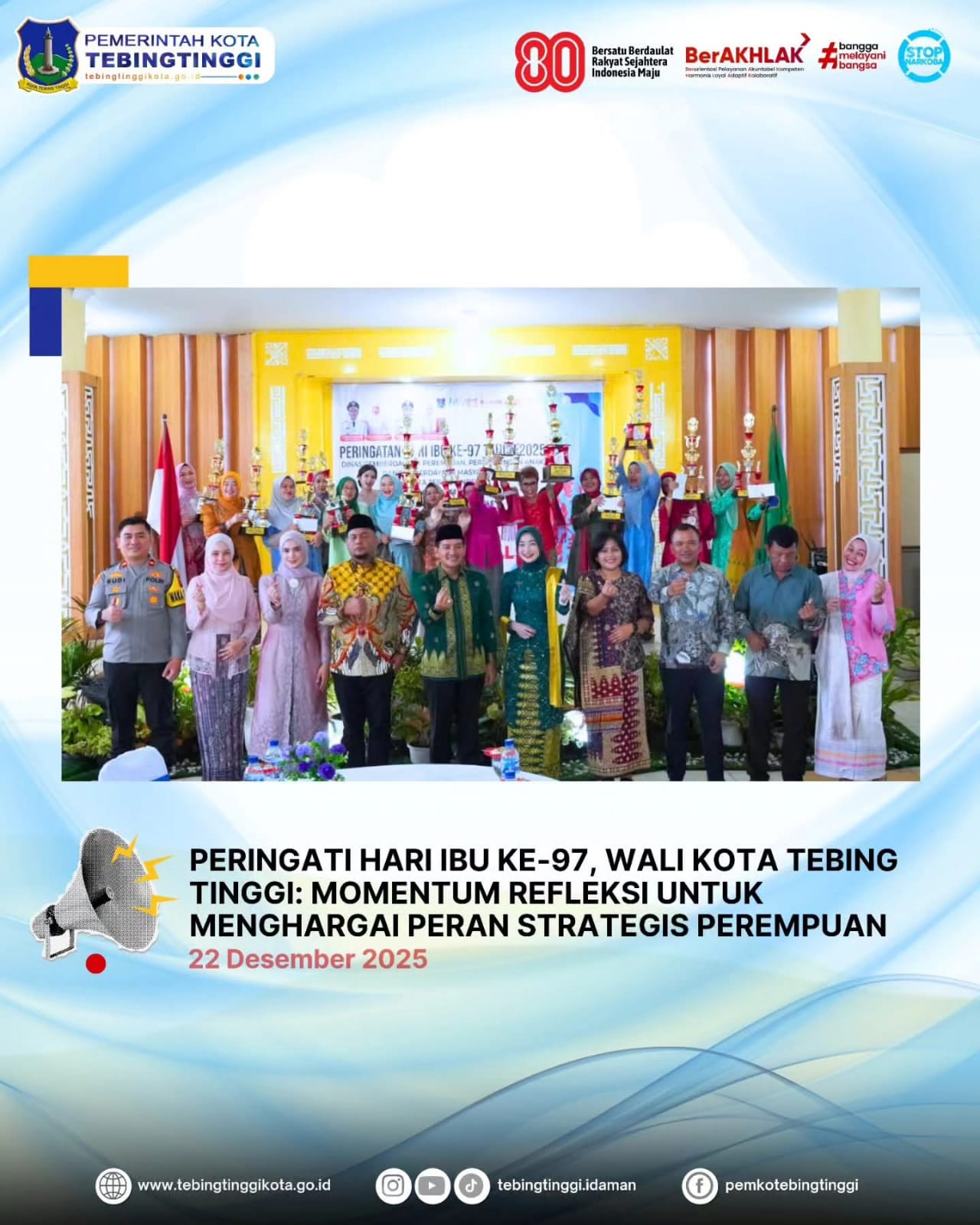 Hal tersebut disampaikan Wali Kota Iman Irdian Saragih saat memberikan sambutan pada Peringatan Hari Ibu ke-97 Tahun 2025 yang mengusung tema “Perempuan Berdaya dan Berkarya, Menuju Indonesia Emas 2045”, bertempat di Aula Gedung Hj. Sawiyah, Jalan Dr. Sutomo kota Tebingtinggi,pada hari Senin (22/12/2025).