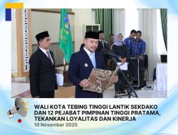 Wali Kota Tebingtinggi,Expodtnews.id H. Iman Irdian Saragih, resmi melantik Sekretaris Daerah Kota (Sekdako) serta 12 Pejabat Pimpinan Tinggi Pratama (PPT Pratama) di lingkungan Pemerintah Kota Tebingtinggi. Acara pengambilan sumpah/janji dan pelantikan tersebut dilaksanakan Senin (10/11/2025), bertempat di gedung Hj. Shawiyah, Jln. Dr. Sutomo.
