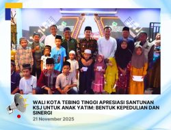 Wali kota Tebingtinggi, H. Iman Irdian Saragih, memberikan apresiasi tinggi terhadap kegiatan Komunitas Sedekah Jumat (KSJ) yang menyalurkan santunan kepada 25 anak yatim piatu di Kota Tebingtinggi. Acara penyerahan santunan ini berlangsung pada Jumat siang,21 November 2025 di Cafe Corner, Jalan M.H. Thamrin Kota Tebingtinggi.